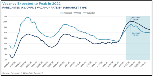 Suburban office has held up better than CBD, and our portfolio of assets saw only a small and manageable rise in May/June of 2020 in unpaid rent. Utilization of our office and mixed-use assets has risen from the 30% range in the early stages of the pandemic to now over 65% across the portfolio. Given the suppressed transaction volumes in office, it may be too early to draw concrete conclusions, but suburban office values have generally held up better than CBD. Rightly so as WFH has had a bigger impact on CBD assets across all major primary and secondary markets. Have you been to downtown Houston, Dallas, Charlotte, or Raleigh in the last 6 months, it’s rough. The following table from Cushman & Wakefield’s 2Q21 Spotlight report underscores the movement of tenants from the CBD to suburban submarkets. Essentially vacancy rates flipped for the first time since 2000 from higher in the suburbs to higher in the CBD, and Cushman forecasts that to continue until at least 2025.