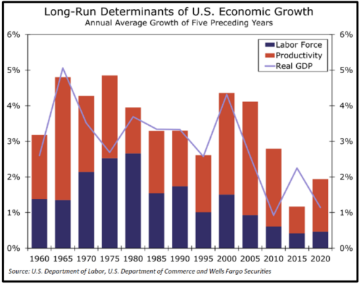 Wells Fargo concludes: “….the trajectory of the labor force growth rate in the United States does not look conducive to a rapid rate of potential economic growth, at least not in the foreseeable future.”