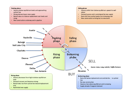 Regarding Industrial, typically each of our target markets are at various stages in the cycle, but the relative outperformance of our target industrial markets across all geographies has made for a boring property clock. All our industrial markets are firing on all cylinders, falling within the rising or peaking phase of the clock. Houston, being the only exception, as it’s in the early innings of a substantial move within the “Rising” phase in the near term. Below is our summary table for Industrial.